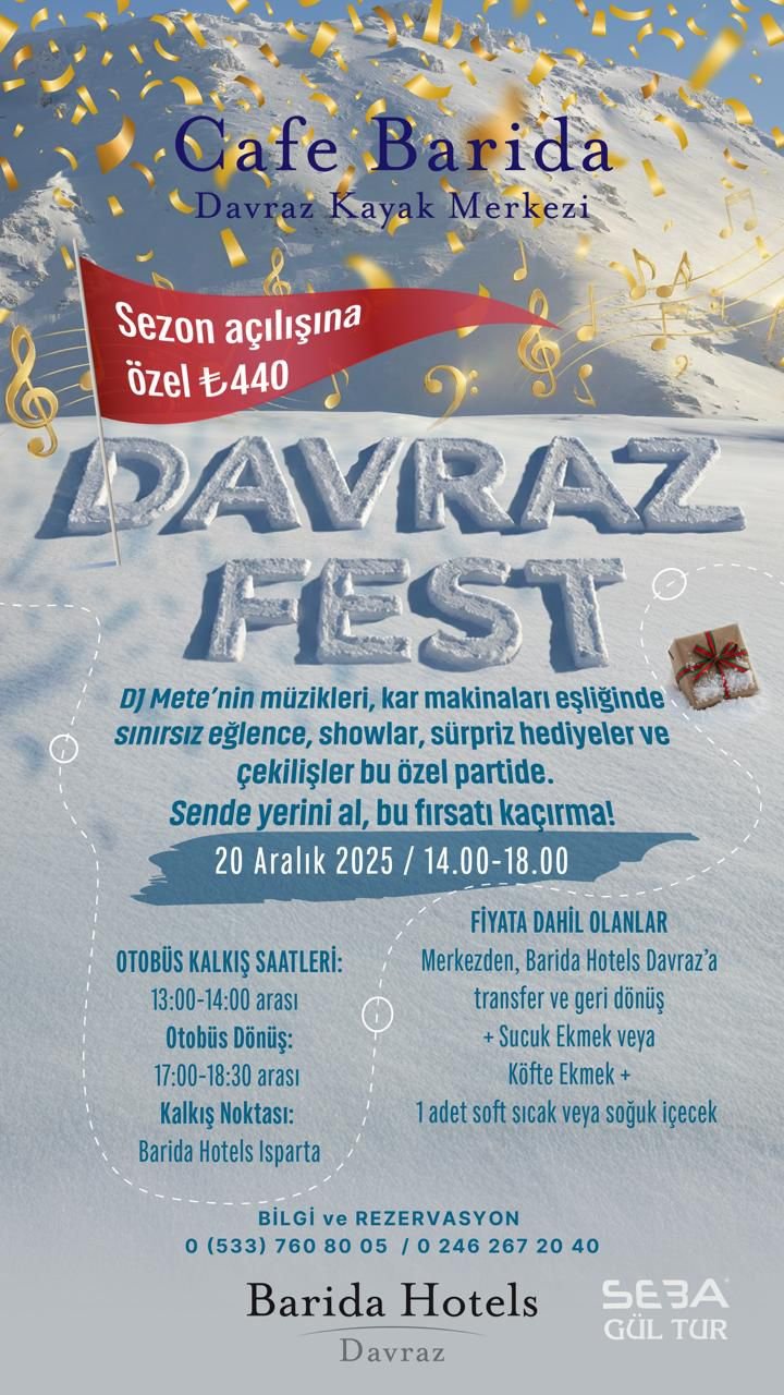 SEzonu Davraz Kayak Merkezi’nde müzik, kar ve eğlenceyle açıyoruz!